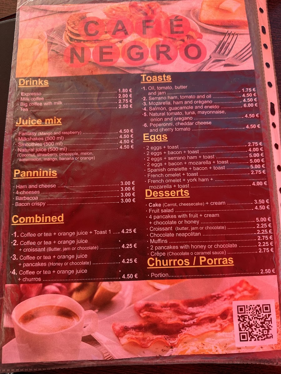 Indeed, the ambience is enhanced by occasional live music, like an artist playing the violin, making each meal feel special. Prices are reasonable, making it a great choice for a quick lunch or a leisurely dinner. While some reviews mention service inconsistencies, the overall dining experience remains enjoyable, with hearty dishes like seafood and chicken paella that are worth the wait. Come savor the essence of Malaga at Cafe Negro!